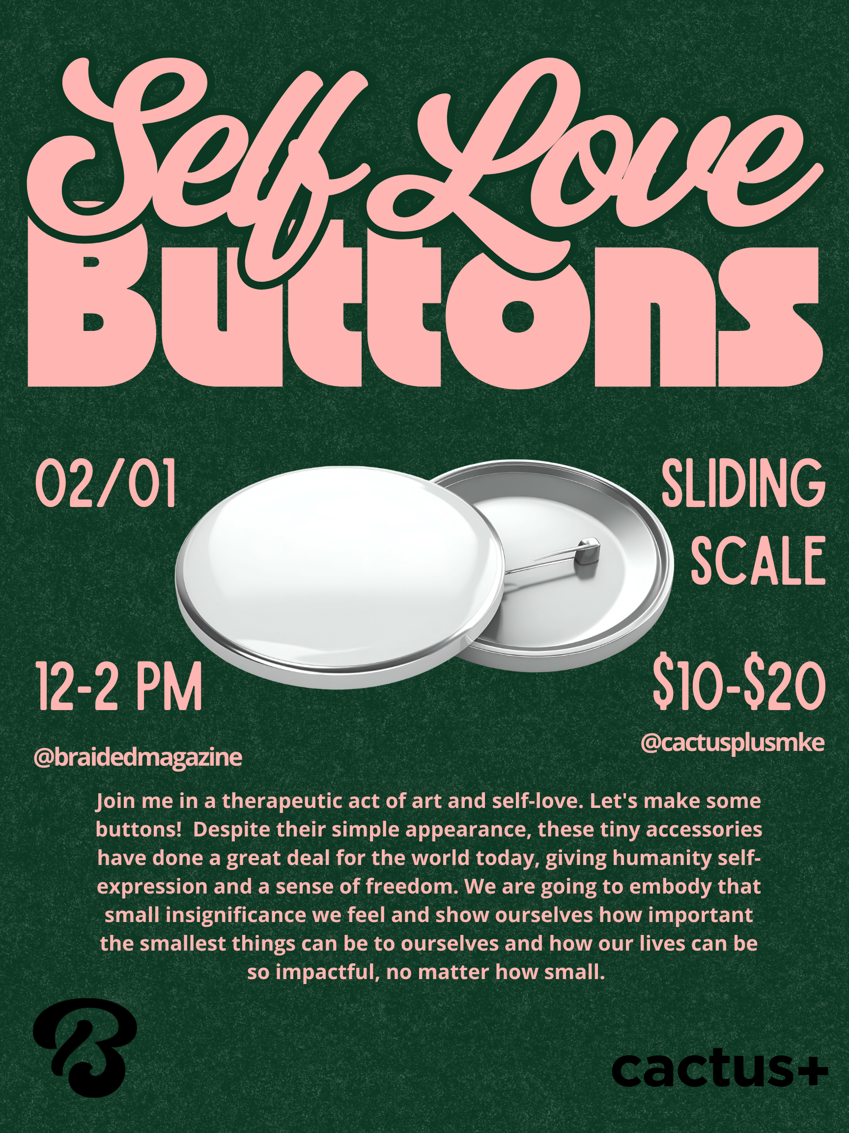 - Self-Love Buttons workshop with Ladasia Bryant of Braided Magazine