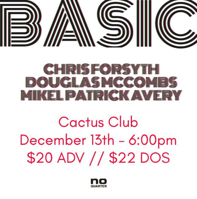 The name of the nascent trio was, of course, obvious: BASIC, capitalized to distinguish themselves from the inspirational Quine/Maher text, and to introduce connotations with another ’80s trope, the obsolete programming language some of us learned back when you learned such things. BASIC, more importantly, denotes returning to one’s roots—in this case, Philly living room jams tangential to bands, arrangements, and songs; loved LPs lost to history, but not to the minds conceiving the music. To end with Mikel: “There’s universality without sacrificing identity or integrity. The music allows space for different minds to live within it.” Which, after all, is the most basic offering music has for anyone.