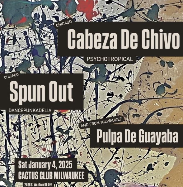 4-piece psychedelic tropical band emerging from Chicago, Illinois and providing infectious rhythms since November of 2021. Guitar, bass, percussions, and organs meld seamlessly to deliver addictive dance instrumentals with an emphasis on melodic riffs and a driving rhythm section. Cabeza de Chivo incorprates multiple styles including cumbia, salsa, merengue, garage rock, surf, and dub.