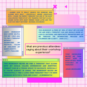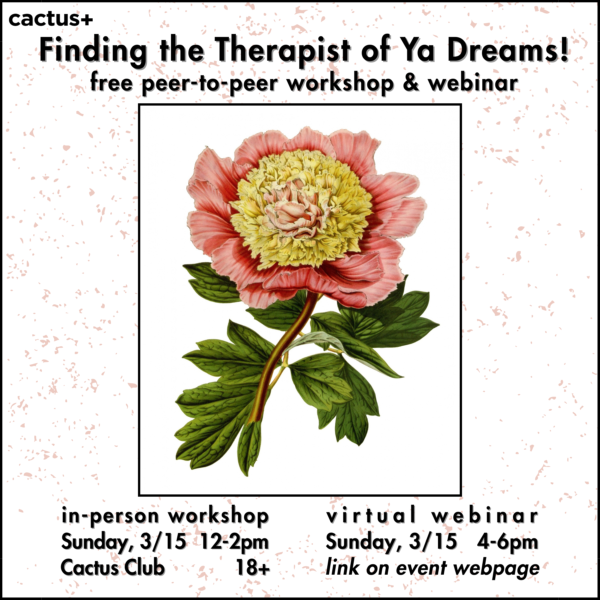 Finding the Therapist of Ya Dreams: a peer-to-peer workshop and webinar