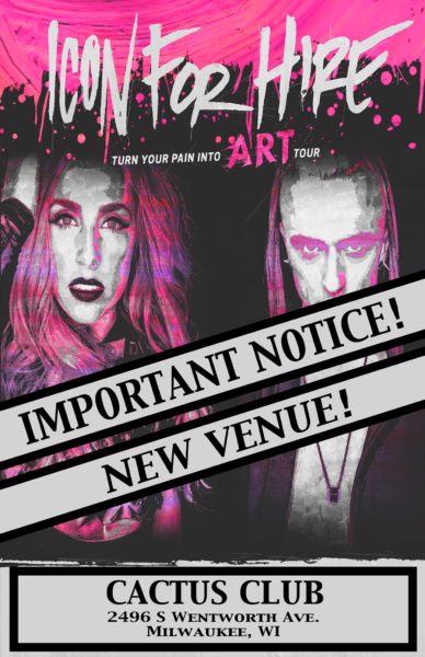 Icon For Hire [at] Cactus Club – Venue Change 21+ Only