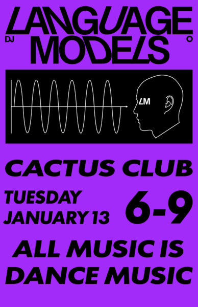 Language Models also hosts Transport, Cactus Club’s own late-night dance party series that focuses on the psychedelic sounds of Midwest house and techno, classic and cutting edge. Transport brings DJs from throughout the region to share the the variety of this rich tradition on the Cactus dance floor.