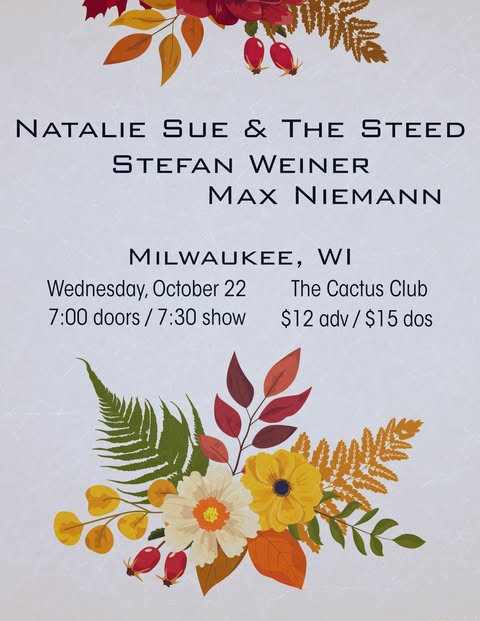 Born under Milwaukee’s summer sun, Natalie Sue and The Steed bring a dreamy twist to country music. Fronted by songwriter and vocalist Natalie Sue, the band blends poetic romance with newfangled twang and classic rock motion.