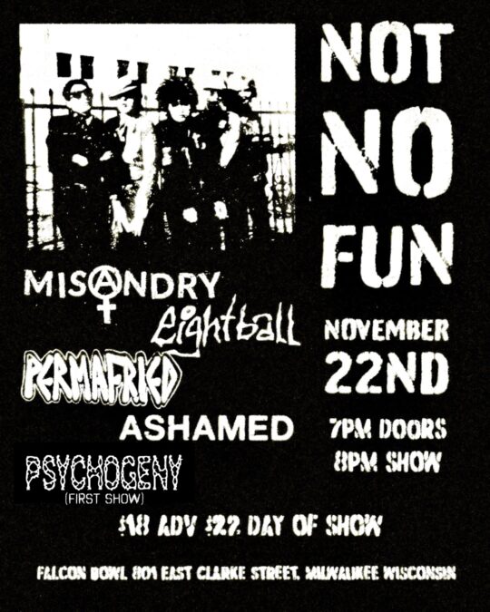 Not No Fun: Misandry • Eightball • Permafried • Ashamed • Psychogeny