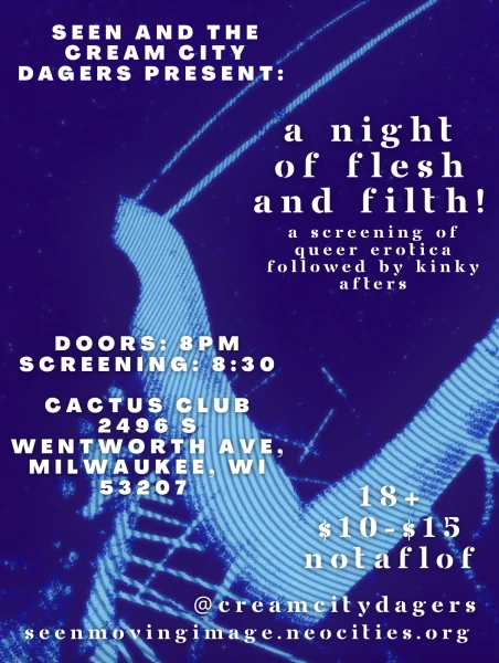 EventSEEN is teaming up with Cream City Daggers to put on a night of flesh and filth! Join us for a screening of queer erotica followed by kinky afters. More details TBA. This is an 18+ Event.